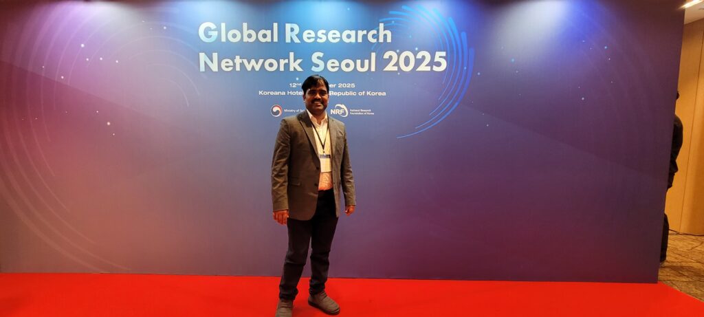 Dr. Shinde was invited to the 2025 Global Research Network Seoul (GRNS) on December 12, 2025 (2025년 해외우수과학자유치사업 연례성과교류회), organized by the National Research Foundation of Korea (NRF) as part of the Brainpool Program, held on December 12, 2025.